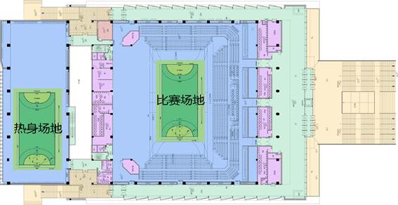 图1:天津师范大学体育馆主馆、副馆平面示意图